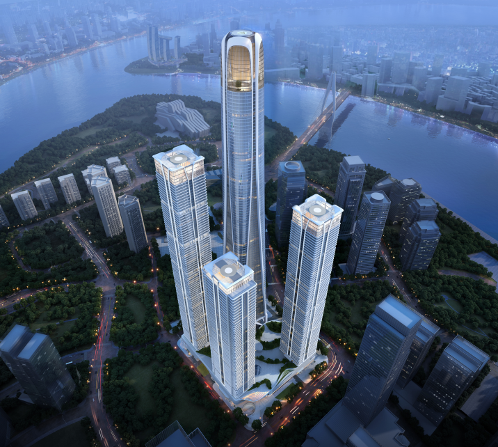 融創A-ONE項目位于江北嘴金融核心區,由4棟超高層建筑構成,其中主塔高470米、共103層,副塔分別高350、300、250米,是全球罕見的超高層建筑集群。項目總投資200億元,占地2.91萬平方米,總建筑面積約71萬平方米,集辦公、住宅、酒店、商業、觀光、城市會客廳等功能于一體。計劃引進金融、涉外、智能科技等中國500強及世界500強標桿企業,打造西部地區總部經濟基地。